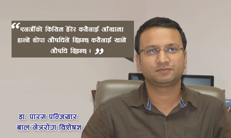 - एलर्जीको किसिम हेरेर कसैलाई आँखामा हाल्ने थोपा औषधिले दिइन्छ कसैलाई खाने औषधि दिइन्छ ।