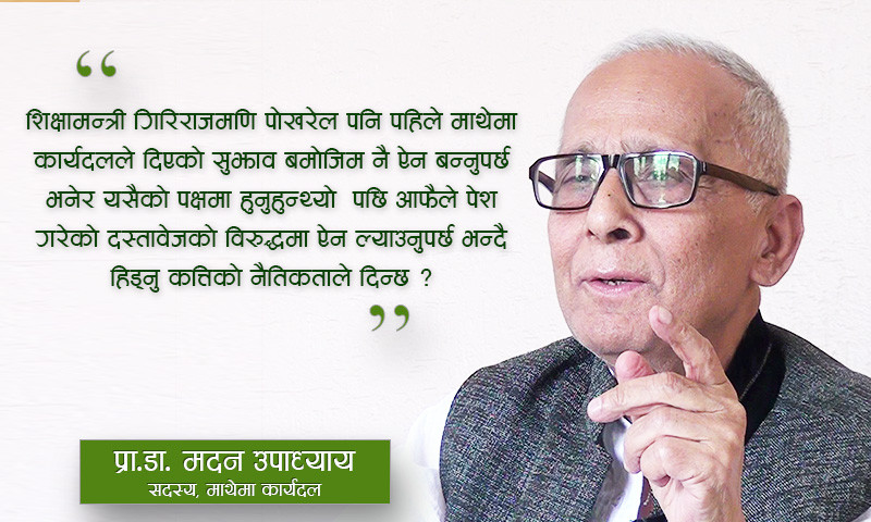 माथेमा कार्यदलका सदस्य उपाध्याय भन्छन्ः शिक्षामन्त्री ले 'रङ' फेरे...