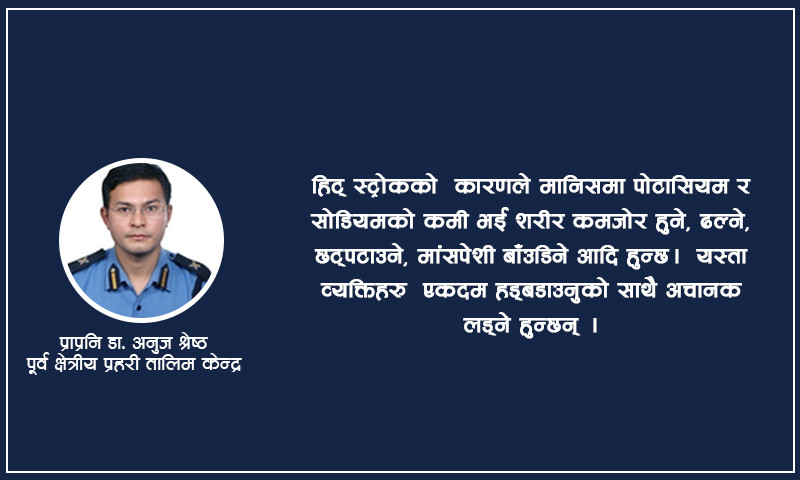 गत जेठ अन्तिम साताको शुक्रबार पूर्व क्षेत्रीय प्रहरी तालिम केन्द्र (पूक्षेप्रताके) विराटनगरको नियमित कार्यतालिका अनुसारको ७ किमि पपेड (दौड) प्रतियोगिताको क्रममा दौड पुरा हुनै लाग्दा १३५औं आधारभुत तालिमामा सहभागी मध्ये तीन जाना तालिमेले आफ्नो होस गुमाए, शरीर कडा हुनुको साथै धेरै तातो भई मानसिक सन्तुलन गुमाएका को की जस्तो व्यवहार देखाउँदै छट्पटाउन थाले । तालिम केन्द्रमा प्राथामिक उपचार गर्दा ३ जना मध्ये २ जना ठिक भए तर एक जनाको २ घन्टासम्म पनि होस नआएपछि हिट् स्ट्रोक भएको भनेर नोबेल मेडिकल केलेज अस्पताल रिफर गरियो ।