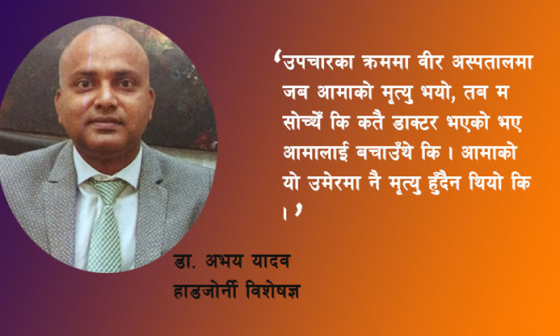 १० वर्षको हुँदा आमाको मृत्यु भयो । उपचारका क्रममा वीर अस्पतालमा जब आमाको मृत्यु भयो, तब म सोच्थेँ कि कतै डाक्टर भएको भए आमालाई बचाउँथे कि ।