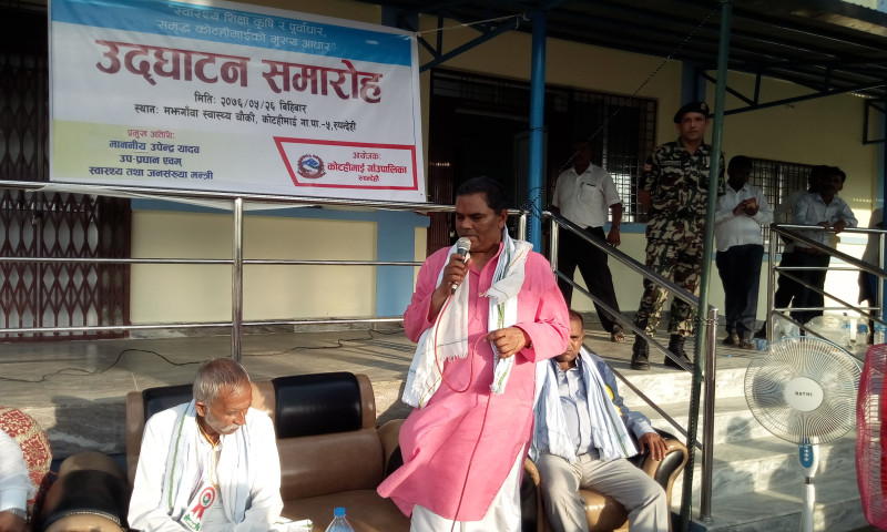 शहरी विकास तथा भवन निर्माण मन्त्रालयलको २ करोड २९ लाखको लगातमा उक्त भवनको निमार्ण सम्पन्न भएको हो । मन्त्री यादवले सरकाको ध्यान स्वस्थ्य नागरिक बनाउने तर्फ रहेको भन्दै प्रत्येक वडामा हेल्थपोष्ट बनाउने काम सुरु भइसकेको बताए ।