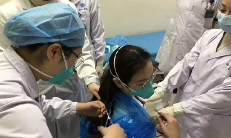 कोरोना भाइरस संक्रमण कम गर्न चीनका ३१ नर्सले काटे कपाल