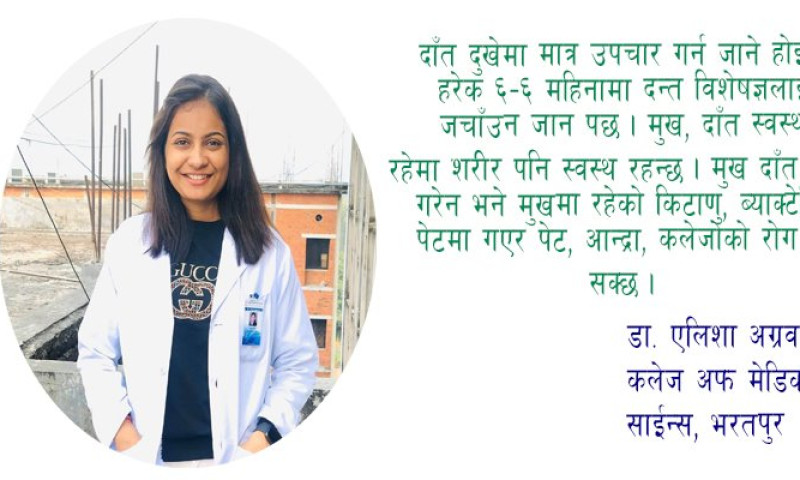 दाँत, मुख सफा र स्वस्थ राखेमा शरीर पनि स्वस्थ रहनेछ । अन्धविश्वासमा नपरि आफ्नो स्वस्थ्यको लागि डाक्टरसँग मात्र उपचार गर्नु पर्छ ।