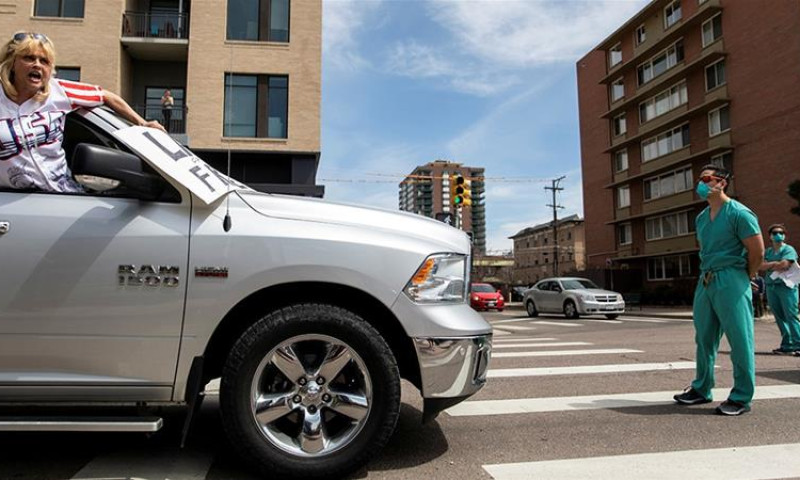 कोरोनाका कारण विश्वमै सबैभन्दा धेरै प्रभावित बनेको अमेरिकामा सोमवारपनि प्रदर्शन जारी रह्यो । लकडाउनका कारण व्यापार व्यवसायमा ठूलो क्षति भइरहेको भन्दै लकडाउन खुलाउन माग गर्दै त्यहाँका मानिसहरु प्रदर्शनमा उत्रिएका छन् । यस्तै लकडाउनको विरोधमा उत्रिएका प्रदर्शनकारीलाई रोक्न अमेरिकी स्वास्थ्यर्मीले विरोधस्वरुप सडकमा उत्रिएका छन् । न्यूयोर्कस्थित एक अस्पतालका दुई जना डाक्टरहरुले प्रदर्शनकारीलाई रोक्न सडकमा उनिहरुको बाटो छेकेका छन् । सामाजीक दूरी कायम गर्नुपर्ने र कोरोनाको महामारीबाट जोगिन सबैले साथ दिनुपर्ने भन्दै डाक्टरहरुले उनीहरुको बाटो छेकेका हुन् ।