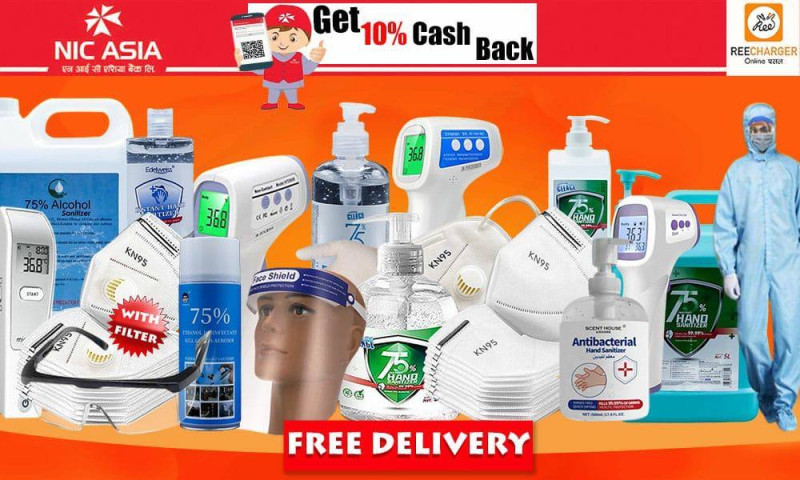 एनआईसी एशिया बैंकले मोबाइल एप रिचार्जरबाट कोरोना सुरक्षा सामग्री खरिद गर्दा १० प्रतिशत छुट दिने भएको छ ।