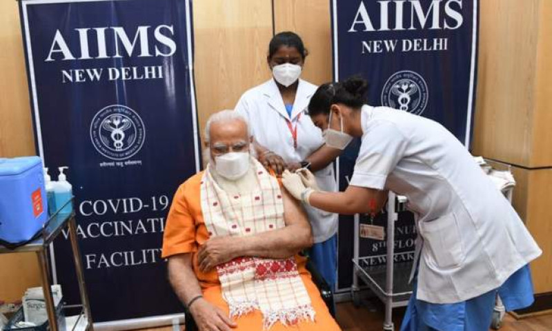 भारतीय प्रधानमन्त्री मोदीले लगाए कोरोना विरुद्धको खोपको दोस्रो डोज
