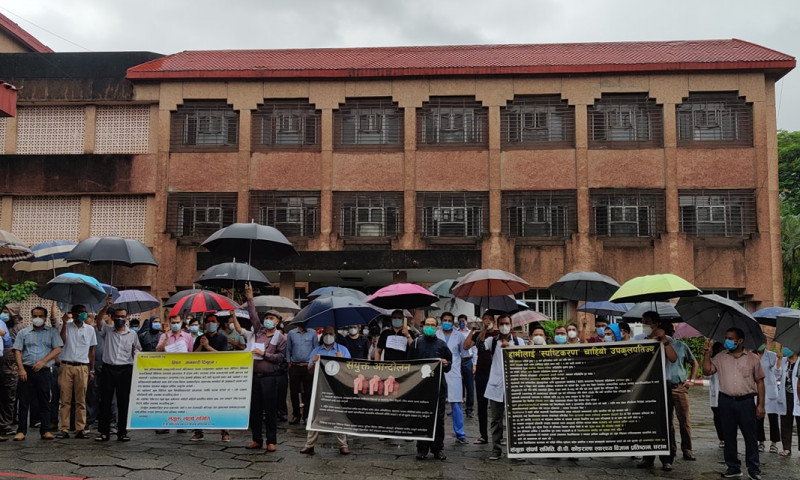 विगत ३० दिनदेखि भ्रष्टाचार तथा स्वास्थ्य प्रतिष्ठानमा अनियमितता भएको भन्दै आन्दोलन गर्दै आएका स्वास्थ्यकर्मी तथा विद्यार्थीले शुक्रबारबाट हरेक दिन बिहान ८ देखि १० बजेसम्म आकस्मिक सेवा, कोभिड उपचार र पूर्वनिर्धारित परीक्षाका कार्यक्रमबाहेकका सम्पूर्ण सेवामा चिकित्सक, नर्स, स्वास्थ्यकर्मी, विद्यार्थीलगायत सबै कर्मचारीको उपस्थित नहुने निर्णय गरेका छन्।