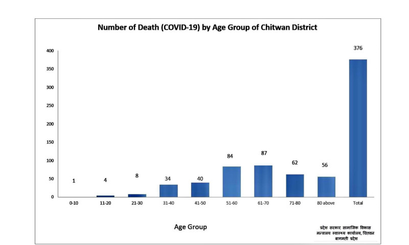 चितवनमा संक्रमित ३ सय ७६ जनाको मृत्यु, कुन उमेर समूहको कति ?