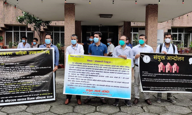 प्रतिष्ठान सुद्धिकरण आन्दोलन गरिरहेको संयुक्त संघर्ष समितिले बिहिबार पत्रकार सम्मेलन गर्दै आइतबारदेखि काम छोड्ने घोषणा गरेको हो। बेथिती र अनियमितताबारे छानबिन गर्ने तर दोषीलाई कारबाही नगर्ने, आन्दोलनरत पक्षसँग पनि सहमति मात्र गर्ने तर कार्यान्वयन गर्न चासो नदिने प्रवृत्ति दोहोर्याएको भन्दै आन्दोलनरत पक्ष सरकार असन्तुष्ट बनेको छ। संघर्ष समितिका सहसंयोजक डा.विष्णु पोखरेलले आन्दोलनले उठाएको मुद्दाहरुलाई सरकारले लिपिबद्ध गर्दै सम्झौता गरेपनि कार्यान्वयनमा ढिलाई भइरहेकोले अब आइतबारदेखि इर्मजेन्सी, कोभिड अस्पतालको सेवा र पुर्वनिर्धारित परीक्षाबाहेक सबै सेवा छोड्ने बताए।