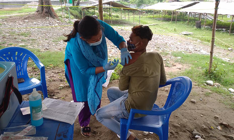 भारतबाट फर्केकालाई गड्डाचौकीमै कोरोनाको खोप लगाइँदै