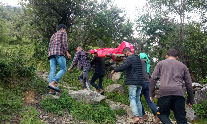 बझाङ,२८ भदौ । जिल्लाको छबिस पाथिभेरा गाउँपालिका–७ मजखोरी गाउँकी एक महिलालाई गएको आइतबार बिहान एकाएक सुत्केरी बेथाले च्याप्यो । बेथाले छटपटाई रहेकी महिलाका आफन्तले उनलाई स्वास्थ्य चौकीसम्म लैजान स्टेचरको खोजी गरे। तर गाउँमा कतै पनि स्टेचर पाइएन ।