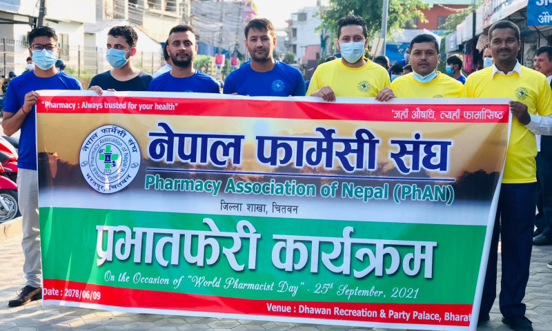 चितवन, ९ असोज । आज सेप्टेम्बर २५ अर्थात् एघारौँ ‘विश्व फर्मासिष्ट दिवस’ को अवसरपारी चितवनमा विभिन्न नारा सहितको प्रभातफेरी कार्यक्रम गरिएको छ। नेपाल फार्मेसी संघ चितवन शाखाको आयोजनामा शनिवार भरतपुरमा सो प्रभातफेरी निकालिएको हो ।