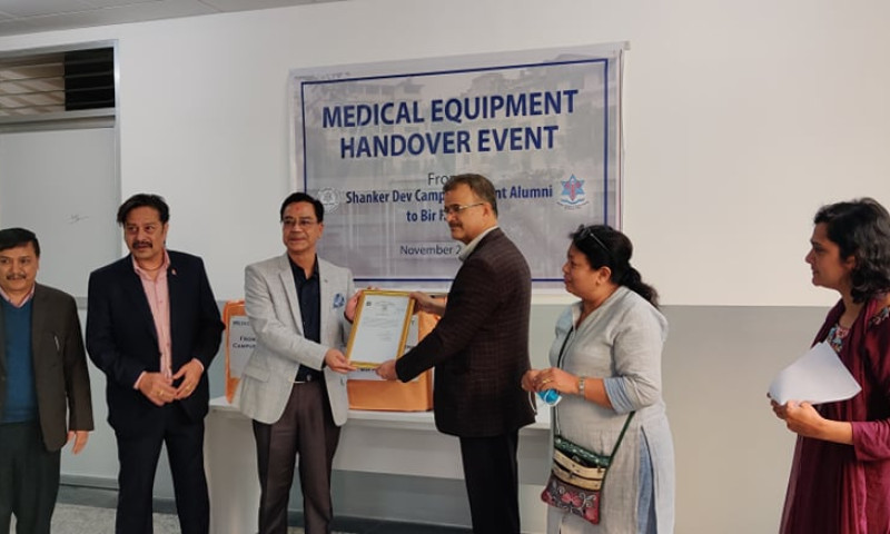 काठमाडौं, १६ कात्तिक । शंकरदेव क्याम्पसको भूतपूर्व विद्यार्थी संघले वीर अस्पताललाई सहयोगस्वरुप स्वास्थ्य सामग्री दिएका छन्।