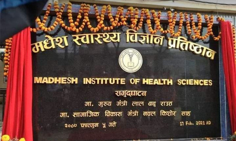 धनुषा, २७ कात्तिक । प्रदेश २ को मधेश स्वास्थ्य विज्ञान प्रतिष्ठानले विभिन्न विषयको स्नातक तहको पठनपाठन गर्ने तयारी पूरा गरेको छ।