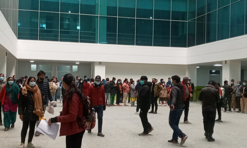 कोभिड-१९ यूनिफाइड केन्द्रिय अस्पतालमा कोरोनाविरुद्धको खोप लगाउनेको भिड