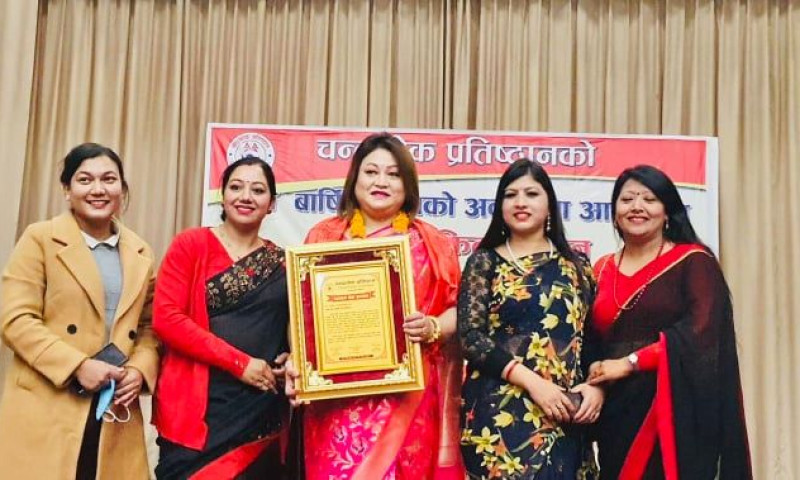काठमाडौं, ४ पुस । काठमाडौंको त्रिपुरेश्वर स्थित ब्लू क्रस हस्पिटलमा कार्यरत बरिष्ठ गाईनोलोजिष्ट ल्यापरेस्कोपिक सर्जन डा. रंगीना लाईकङबम सम्मानित भएकी छिन् । स्वास्थ्य क्षेत्रमा योगदान गरे बापत डा. रंगीना लाईकङबमलाई लोक चन्द्र प्रतिष्ठानको दोश्रो बार्षिक साधारण सभाको उपलक्ष्यमा बिशेष सम्मान प्रदान गरिएको हो ।