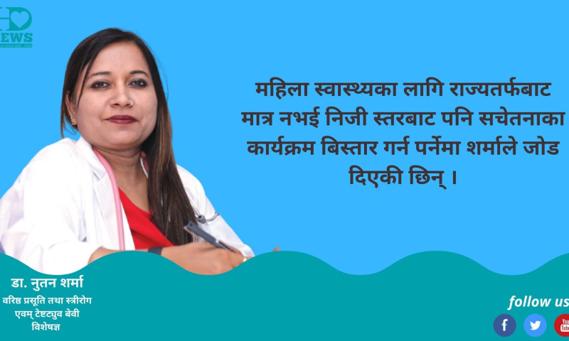 प्रसूति तथा स्त्री रोग एवं बाँझोपन सम्बन्धी समस्याको उपचारमा चलेको नाम मध्यको एक हो, डा. नुतन शर्मा ।