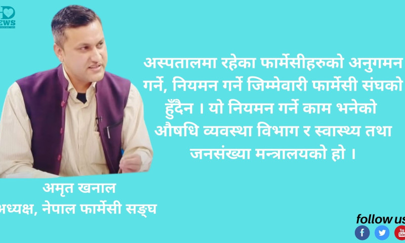 (सरकारी अस्पताल फार्मेसीमा नियमित औषधि नपाउनुको कारण के हो ? आवश्यक स्रोत साधन र विज्ञ फार्मासिस्ट बिना नै सामान्य प्रशासनका खरिदारद्वारा औषधि भण्डारण तथा वितरण गरिँदै आएको छ यस्लाई समाधान गर्न नेपाल फार्मेसी सङ्घ के गर्दै छ ? लगायतका विषयमा आधारित रहेर नेपाल फार्मेसी सङ्घका अध्यक्ष अमृत खनालसँग हाम्रो डक्टर न्यूजले गरेको कुराकानीको सम्पादित अंश)