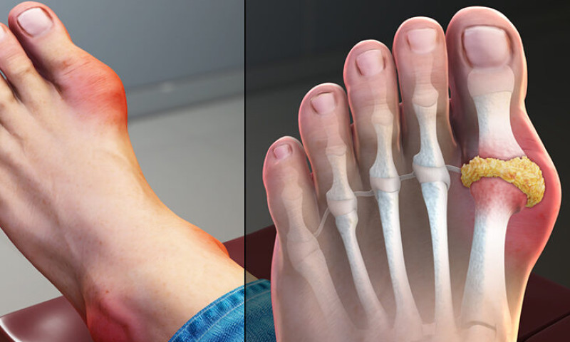 खुट्टाको बुढी औंलाको जोर्नी दुख्ने । सुन्निने ।