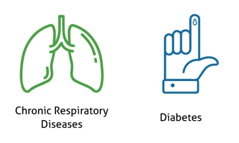 जिल्लामा दमबाट ५ हजार ७० जना, स्वासप्रश्वाँस सम्बन्धी ४ हजार ८ सय ७३ जना, हृदयघातका बिरामी १ सय ७ जना, उच्च रक्तचापबाट ९ हजार ४ सय, मिर्गाैलाका बिरामी २ सय ७४ जना, कलेजोको क्यान्सर १ सय ११ र पत्थरीका बिरामी १ हजार ४ सय ३१ रहेको स्वास्थ्य कार्यालयको तथ्याङ्कमा उल्लेख छ ।