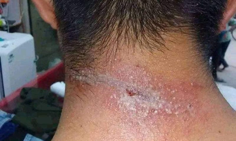 केही दिनअघि धनगढीका टंक पाठकको घाँटीमा एक किसिमको घाउ देखियो । चिलाउने र छुँदा दुख्ने त्यो घाउ के–कारणले भयो भनेर उनले ठम्याउन सकेनन्। उनको छाला चिलाउने, पोल्ने र संक्रमित ठाउँमा फोका उठ्ने भइरहेको थियो । उनले एन्टीसेफ्टिक पाउडर लगापछि २ दिनमा त्यो घाउ निको भयो।