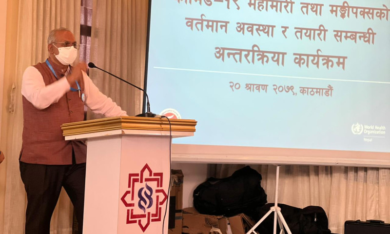 स्वास्थ्य पत्रकार मञ्च नेपालको आयोजना तथा विश्व स्वास्थ्य सङ्गठन नेपालको प्राविधिक सहयोगमा शुक्रवार आयोजित ‘कोभिड–१९ को महामारी तथा मङ्कीपक्सको वर्तमान अवस्था र तयारी’ सम्बन्धी अन्तरक्रिया कार्यक्रमलाई सम्वोधन गर्दै उनले फेरि विश्वभर नै कोभिड– १९ को सङ्क्रमण र मृत्युको सङ्ख्या बढेको उल्लेख गर्दै गत ६ हप्तामा विश्वव्यापी साप्ताहिक सङ्क्रमणको सङ्ख्या लगभग दोब्बर भएको बताए ।