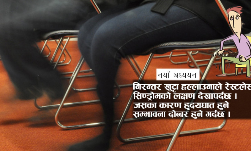 काठमाण्डौं, १८ माघ । के तपाँईको खुट्टा हल्लाइरहने बानि छ ? यदि छ भने आजैबाट छोड्नुस् । किनभने खुट्टा हल्लाइरहने बानीले मुटुसम्बन्धि रोग लाग्न सक्छ । चिकित्सा विज्ञानका अनुसन्धानकर्ताहरुले निरन्तर खुट्टा हल्लाइरहने बानी रेस्टलेस सिण्ड्रोमको लक्षण हुन सक्ने बताएका छन् । यसकारण शरीरमा आइरनको मात्रा कमी हुने बताएका छन् । अनुसन्धानले यस्तो लक्षण ३५ वर्षभन्दा माथिको समयमा १० जनालाई देखिने समेत बताएका छन् ।