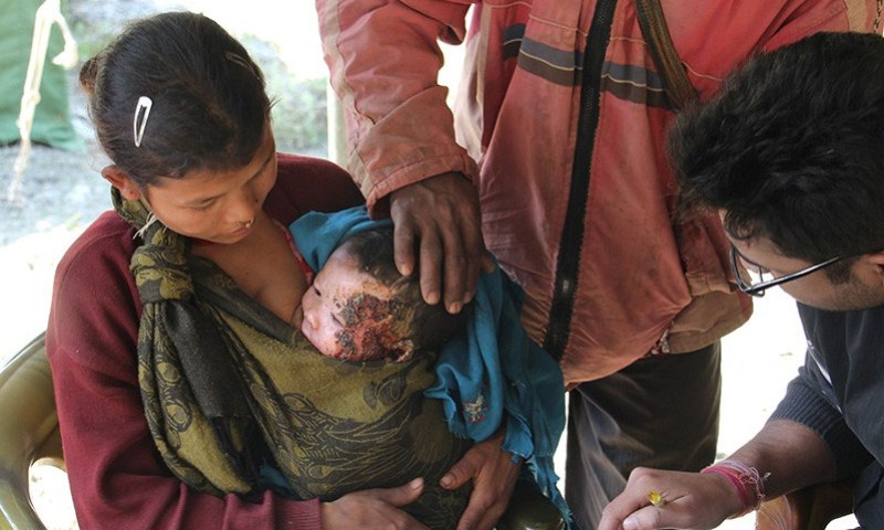 आगोले पोलिएको चेपाङ बालकको उपचार