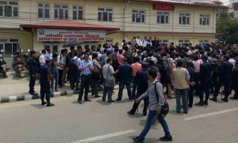 सरकारी निर्णयका विरुद्धमा अाैषधि अायातकर्ता निरन्तर अान्दाेलनमा