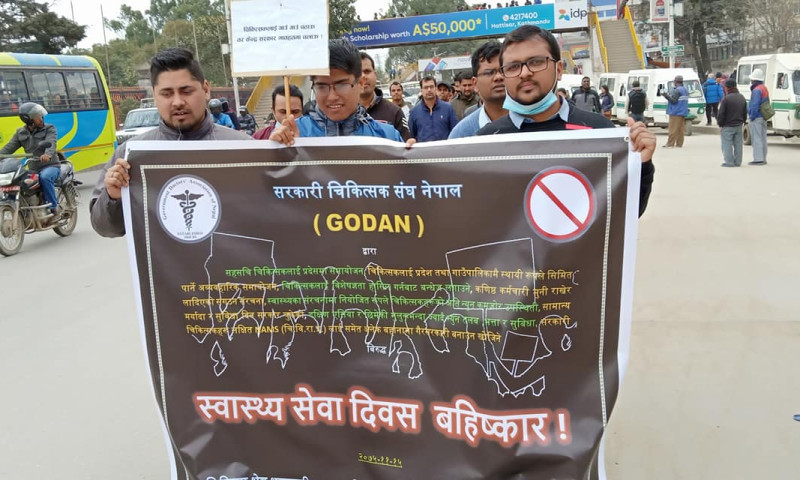 काठमाडौं, १९ फागुन । कर्मचारी समायोजनमा असन्तुष्टि जनाउँदै आन्दोलनमा उत्रिएका सरकारी चिकित्सक संघ (गोदान) ले आन्दोलनका कार्यक्रम स्थगित गरेको छ ।