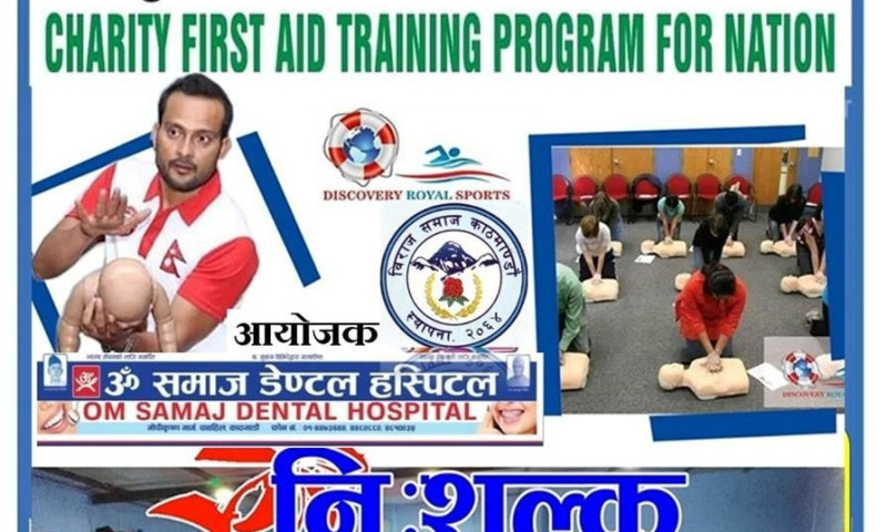 'राष्ट्रको लागि योगदान' भन्ने मुल नारा लिएर युएईका सामाजिक अभियन्ता ओमप्रसाद उप्रेतीको प्रत्यक्ष प्रशिक्षणमा डिस्कभरी रोयल स्पोट्र्स प्रा लि, ओम समाज डेन्टल हस्पिटल तथा विराज समाजको सयुक्त आयोजना निशुल्क प्राथमिक उपचार तालिम हुने भएको हो ।