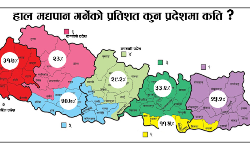 मद्यपान नगर्नेमा प्रदेश नं.२ अगाडि, कुन प्रदेशमा कति प्रतिशतले गर्छन् मद्यपान