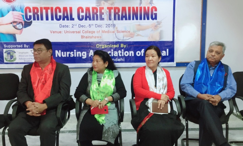 रुपन्देही, १६ मंसिर । नेपाल नर्सिङ संघ रुपन्देही शाखाको आयोजना तथा एलाईस लि इस्टिच्यूट अफ एडभान्स नर्सिङ अस्पताल सिंगापुरको सहयोगमा क्रिटिकल केयर सम्बन्धी चार दिने तालिम सोमबारबाट सुरु भएको छ ।