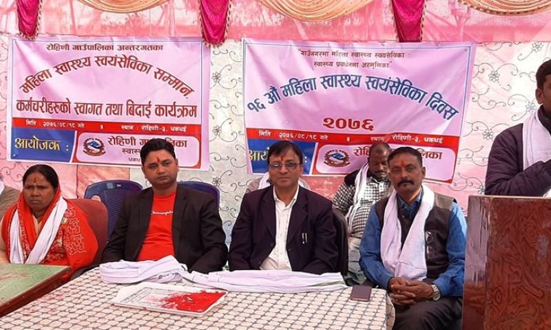 रोहिणी गाउँपालिका उपाध्यक्ष शिवकान्ती चमारको अध्यक्षता तथा अध्यक्ष सनोज कुमार यादवको प्रमुख आतिथ्यतामा सम्पन्न कार्यक्रममा गाउँपालिकाका प्रमुख प्रशासकिय अधिकृत रोमनाथ न्यौपने, गाउँपालिकाका प्रवक्ता तथा वडा नम्बर २ का वडा अध्यक्ष सरोज कुमार पाण्डे, वडा नम्बर ३ का वडा अध्यक्ष बिर बहादुर क्षेत्री लगायतले महिला स्वास्थ्य स्वयम सेविकाहरुको प्रयास बारे प्रंशसा गरेका थिए ।