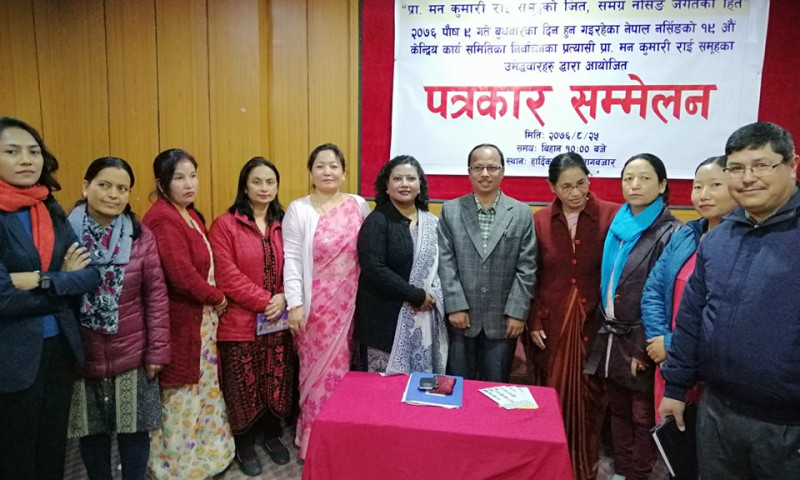 राजधानीमा पत्रकार सम्मेलन गर्दै मनकुमारी राई नेतृत्वको प्यानलले आफ्नो प्रतिवद्धता पत्र र उम्मेदवार परिचय गराएको हो । सो कार्यक्रम अघिल्लो अधिवेशनमा समेत जीत हासिल गरेको संघका पूर्व तथा वर्तमान पदाधिकारीहरुले संघमा आफुहरुले नेतृत्व गरेपछि हासिल गरेको उपलब्धिहरु सुनाएका थिए । प्रगतिशिल समुहले आफ्नो प्रतिवद्धता पत्रमा सबै संघीय संरचना र जिल्लाहरुमा संघको संरचना निर्माण गर्ने, नर्सिङ शिक्षा, सेवा र अभ्यास र यसलाई अझ मजबूत बनाउन नर्सिङ अनुसन्धान र नर्सिङ प्रशासन तथा व्यवस्थापनलाई सरकारी तथा गैरसरकारी क्षेत्रमा लागू गर्न पहल गर्नेजस्ता प्रतिवद्धता गरिएको छ ।