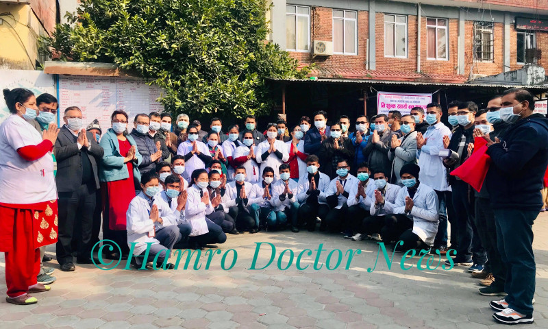 चिकित्सक तथा स्वास्थ्यकर्मी र सर्वसाधारणलाई सुरक्षित रहन माक्स र हात मिलाउनुको साटो नमस्ते गर्नु पर्छ भन्ने सन्देश दिन कार्यक्रम आयोजना गरिएको अस्पतालका प्रमुख मेडिकल सुपरिटेन्डेन्ट डा. श्रीराम तिवारीले बताए ।