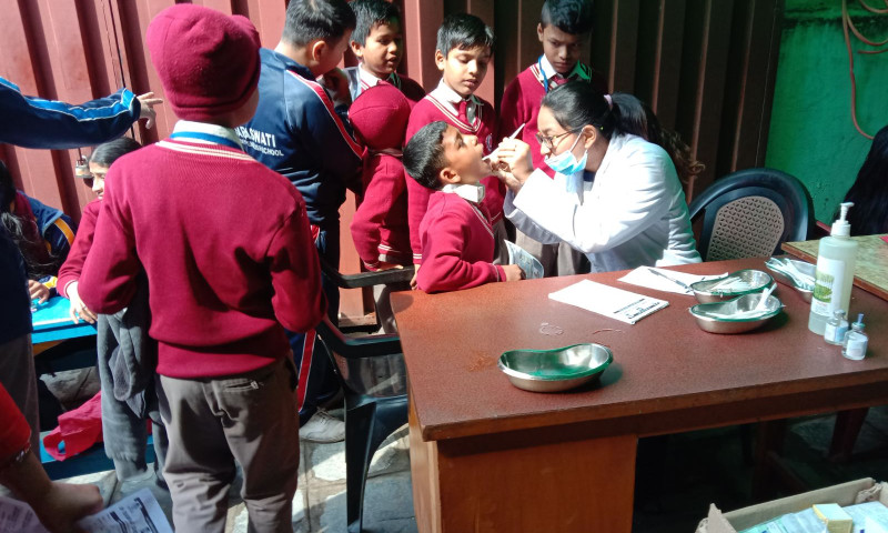 चाबहिलको सरस्वती एकेडेमीमा ओम समाज डेन्टलको निःशुल्क शिविर, २ सय विद्यार्थी लाभान्वित