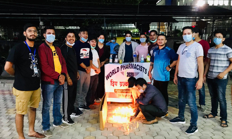 सो कार्यक्रमा फर्मासिष्टहरुले विभिन्न ठाउँमा ठूलो अक्षरमा ‘ह्यापि फर्मासिष्ट डे’ लेखेर त्यसमै दिप प्रज्वलन गरेका थिए ।