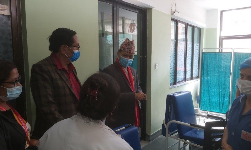 काठमाडौं महानगरका प्रमुखद्वारा ॐ अस्पतालस्थित खोप केन्द्रको अवलोकन