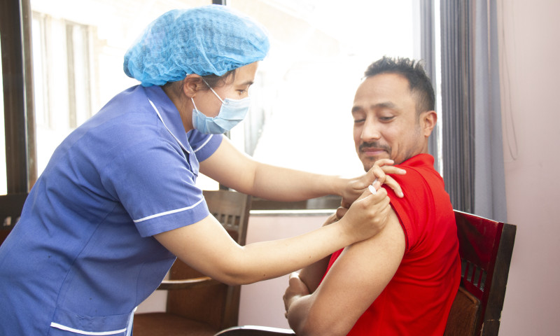 जिल्ला जनस्वास्थ्य काठमाडौंको पहल तथा ॐ हस्पिटल एण्ड रिसर्च सेन्टरको सहकार्यमा सञ्चालित खोप कार्यक्रममा उनीहरुलाई खोप लगाइएको हो ।