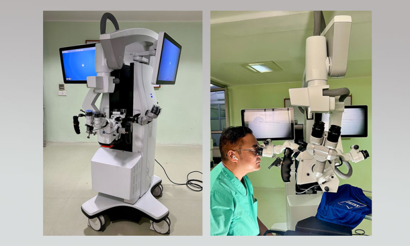 सूक्ष्म एवं जटिल शल्यक्रियामा माइक्रोस्कोप प्रयोग गरिन्छ । जर्मनबाट छ करोडको लागतमा खरिद गरेर ल्याइएको यो माइक्रोस्कोपमा रोबोटिक सिस्टम, फोरके रेजुलेशनसहितका धेरै अत्याधुनिक फिचर रहेका छन् । रोबोटिक माइक्रोस्कोप भएकाले यसले चिकित्सकले बनाएको अप्रेसन योजनामा काम गर्छ । यसको सहायता लिएर अप्रेसन गर्दा डाक्टरलाई अप्रेसन गर्न सजिलो हुने, अप्रेसन छिटो हुने र बिरामीलाई पनि जोखिम कम हुने डा.थापाको भनाइ छ ।
