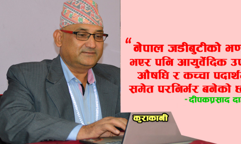 नेपालमा प्रशस्त स्रोत र सम्भावना भएर पनि आयुर्वेदिक उपचार पद्धति अपेक्षाकृत रूपमा विकास हुन सकेको छैन । जसकारण नेपाल जडीबुटीको भण्डार भएर पनि आयुर्वेदिक उपचार, औषधि र कच्चा पदार्थमा समेत परनिर्भर बनेको छ । यतिका सम्भावना हुँदाहुँदै पनि नेपालमा आफ्नै प्राचीन आयुर्वेद र परम्परागत उपचार पद्धति विकास हुन नसकेको होला । आयुर्वेदिक एवम् हर्बल उपचार र औषधि नेपालका बजारमा जम्मा ६ प्रतिशतमात्र हिस्सा छ । नेपालले आयुर्वेदिक क्षेत्रको विकासका लागि के गर्नुपर्छ भन्ने विषयमा हाम्रो डक्टरले हर्बल औषधि उत्पादक तथा नेपाल औषधि उत्पादक संघ उपाध्यक्ष दीपकप्रसाद दाहालसँग कुराकानी गरेको छ ।