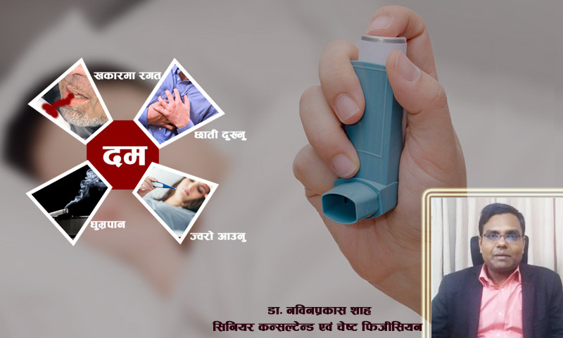 दम के कारणले हुन्छ भन्ने निश्चित नभए पनि अत्यधिक धुवाँ धूलोमा धेरै समय बस्ने मानिसमा यसको जोखिम उच्च रहन्छ । यस बाहेक छातीका अन्य समस्याले पनि दम हुन्छ । दम श्वास प्रश्वास सम्बन्धी रोग हो । यो जुनसुकै उमेर समूहका मानिसमा हुनसक्छ । दमको उपचार लामो समयसम्म गर्नुपर्ने हुन्छ । दम वंशाणुगत पनि हुन्छ । सिनियर कन्सल्टेन्ड एवं चेष्ट फिजीसियन डाक्टर नविनप्रकास शाहले दम के कारणले हुन्छ, यसबाट कसरी जोगिने भनेर केही सुझाव दिएका छन् ।