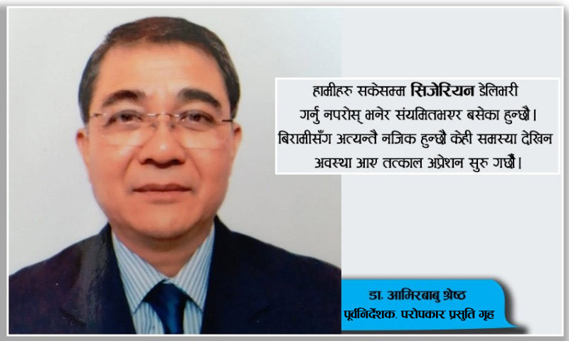 सरकारी अस्पतालमा २४ सै घण्टा सबै विधाका विशेषज्ञ डाक्टरहरु बसेका हुन्छन् । आवश्यक परेको खण्डमा उनिहरु हर समय अप्रेशनगर्न तयारी अवस्थामा हुन्छन । तर, निजी स्वास्थ्य संस्थामा विशेषज्ञ चिकित्सक २४ घण्टा कहिँ पनि बस्दैनन् । निजीमा मेडिकल अफिसरले मात्रै सेवा दिईरहेका हुन्छन् । उनिहरु यस विषयमा विज्ञ हुँदैनन । हामीहरु सकेसम्म ‘सिजेरियन’ डेलिभरी गर्नु नपरोस् भनेर संयमित भएर बसेका हुन्छौं । बिरामीसँग अत्यन्तै नजिक हुन्छौं केही समस्या देखिन अवस्था आए तत्काल अप्रेशन सुरु गर्छौं ।