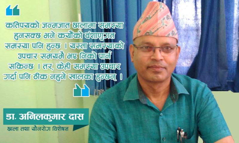 कतिपयको जन्मजात छालामा समस्या हुनसक्छ भने कयौंको वंशाणुगत समस्या पनि हुन्छ । यस्ता समस्याको उपचार समयमै भए निको पार्न सकिन्छ । तर, केही समस्या उपचार गर्दा पनि ठीक नहुने खालका हुन्छन् ।