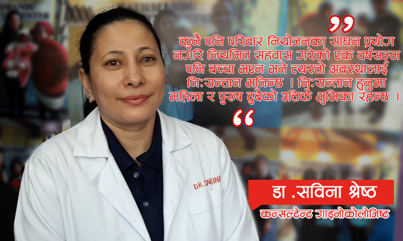 कुनै पनि परिवार नियोजनका साधन प्रयोग नगरि नियमित सहवास गरेको एक वर्षसम्म पनि बच्चा भएन भने त्यस्तो अवस्थालाई निःसन्तान भनिन्छ । निःसन्तान हुनुमा महिला र पुरुष दुबैको उत्तिकै भुमिका रहन्छ । कन्सल्टेन्ड गाइनोकोलोजिष्ट सविना श्रेष्ठको भनाइ यस्तो छ ।